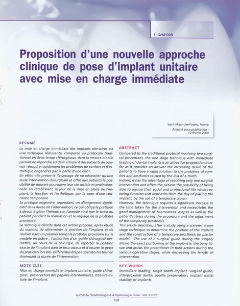 Journal de Parodontologie & d’Implantologie Orale. Année 2004